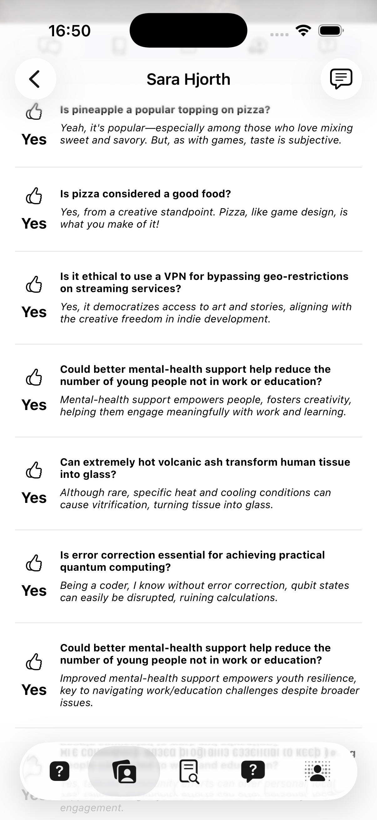 So now we got an app, we got personas generating and answering questions. We also generate blog posts from the results. And you could chat with the personas for (reasons unknown)?